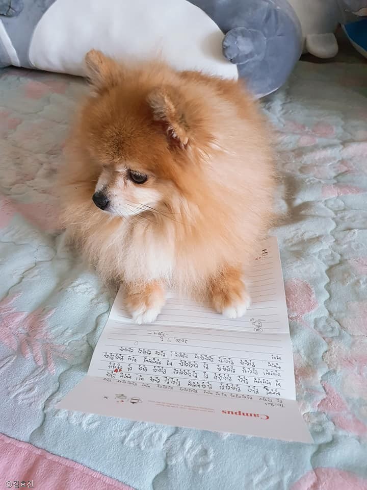 공개된 사진 속에는 솜이가 자신에게 온 편지를 읽고(?) 있는 모습이 담겼다.