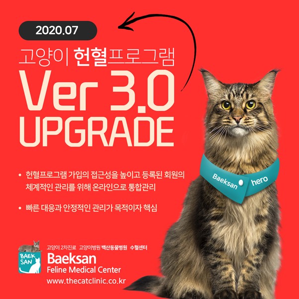 백산동물병원, 고양이 헌혈프로그램 3.0 업그레이드