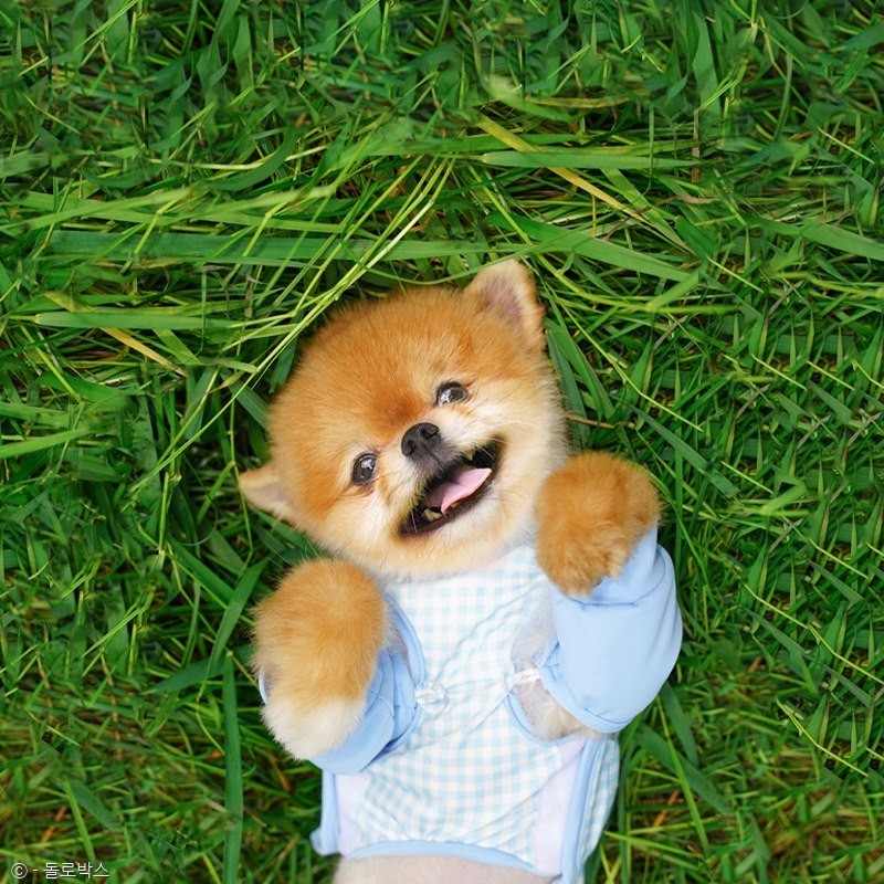 산책이 끝나고 나면 강아지 몸에는 잔디와 모래, 흙, 나뭇잎이 한가득이다. 옷을 입혔어도 머리가 아프기는 마찬가지다. 사람 취향과는 다르게 꼬릿하고 비린 냄새를 좋아해서 뒹구는 것을 좋아하는 강아지들. 뒹굴복이 좋은 대안이 될 수 있다.