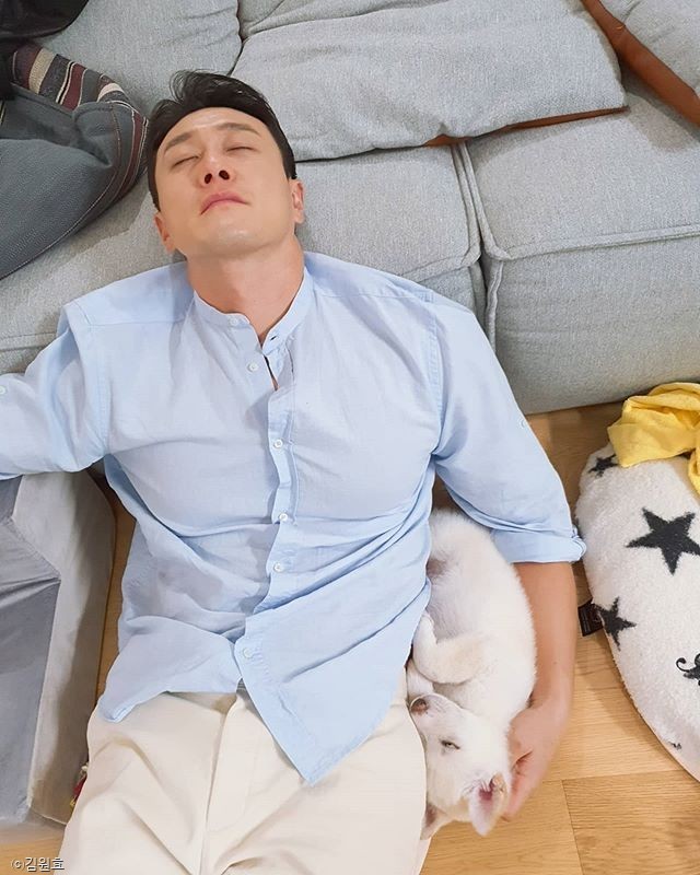 공개된 사진 속에는 태풍이와 함께 여유로운 휴식을 취하고 있는 김원효의 모습이 담겼다. 김원효에게 몸을 기대고 꿀잠에 빠진 귀여운 태풍이의 모습이 눈길을 끈다.
