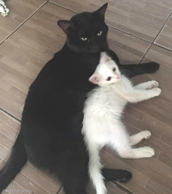 그와 함께 사는 고양이들 중 가장 나이가 많은 검은 고양이 살렘이 막무가내로 이웃집 아깽이를 집으로 데려왔기 때문이다.