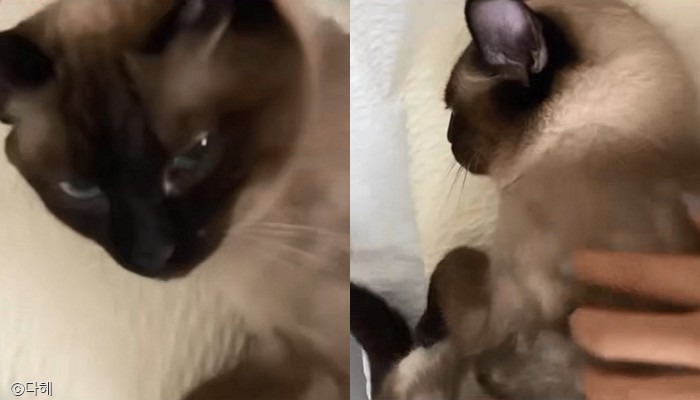 콕콕 건드리는 집사 때문에 잠에서 깬 다동이는 기분이 상했는지 꿈쩍도 하지 않고 꼬리만 탕탕 쳤다.
