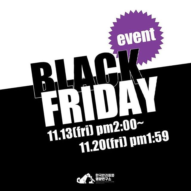 블랙프라이데이 이벤트는 한국반려동물영양연구소의 네이버 스마트스토어에서 진행된다. 자세한 사항은 한국반려동물영양연구소 인스타그램을 참고하면 된다.