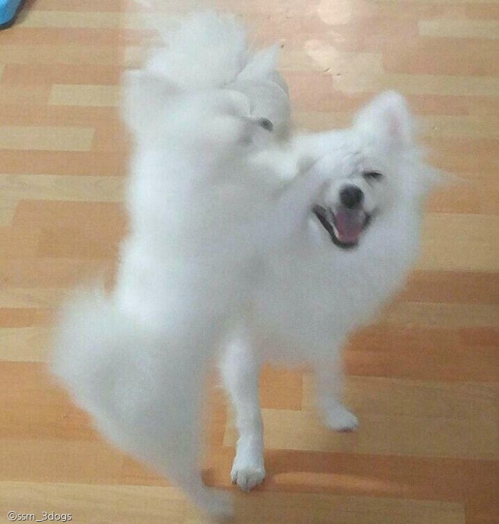 스피츠인 설이와 포메라니안인 솜이는 크기만 다르고 색과 생김새가 비슷해 종종 오해를 산다는데.