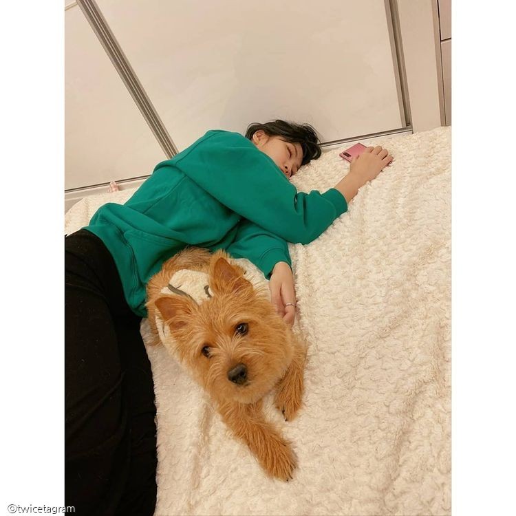 사진을 본 팬들은 "강아지들 돌보다 지친 모모", "나도 강아지들한테 둘러싸여 낮잠 자구 싶다", "부, 카야, 버터랑 모모까지 한 샷에서 보다니 너무 행복하다", "귀요미들이 한자리에 모였네요" 등의 반응을 보였다.