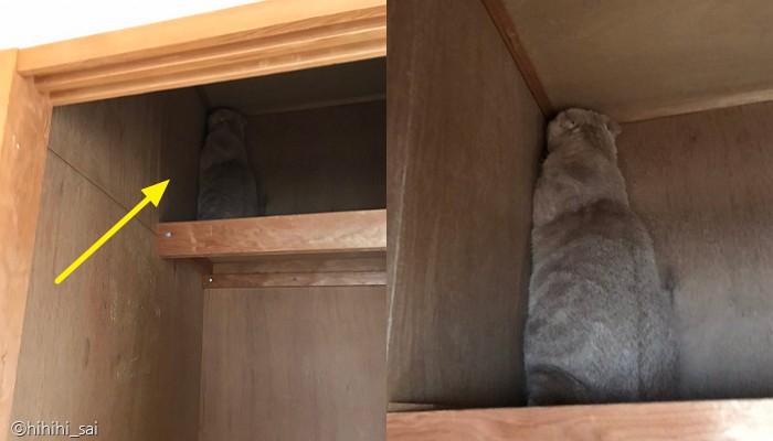 옷장 벽과 물아일체가 되어 버린 녀석을 보며 집사는 안도감과 어이없음이 동시에 밀려와 웃음을 터트렸다.