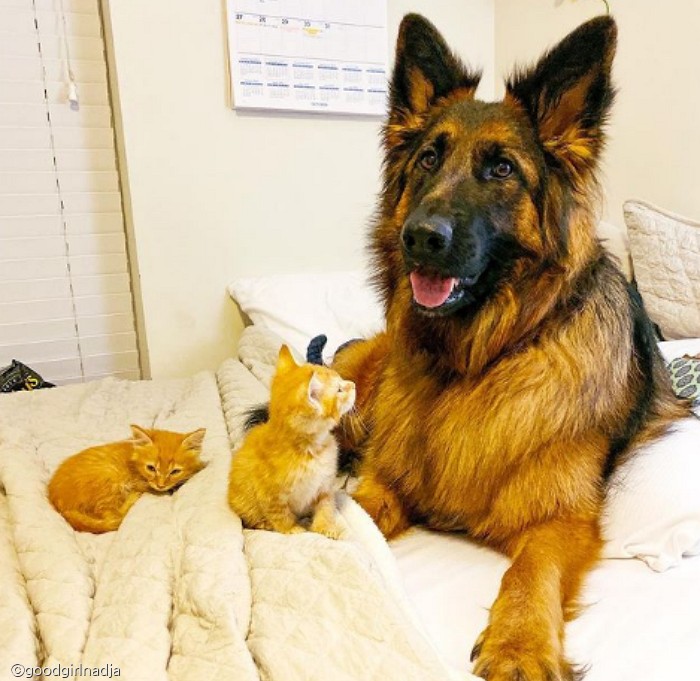 그녀와 함께 살고 있던 셰퍼드 나자는 자신의 얼굴 크기보다 작은 고양이 동생을 애지중지 돌봤다.