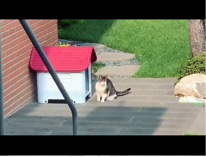 고등어태비 고양이는 강아지집을 안팎으로 살피면서 한편으로 영상을 찍는 하희라를 빼꼼히 바라보는 모습으로 웃음짓게 한다.