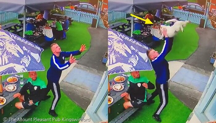 그 사이 1층 야외에서 식사를 하고 있던 애덤 레이븐홀(29)은 강아지의 위치를 확인한 뒤 녀석이 떨어질 것 같은 곳으로 이동했다.