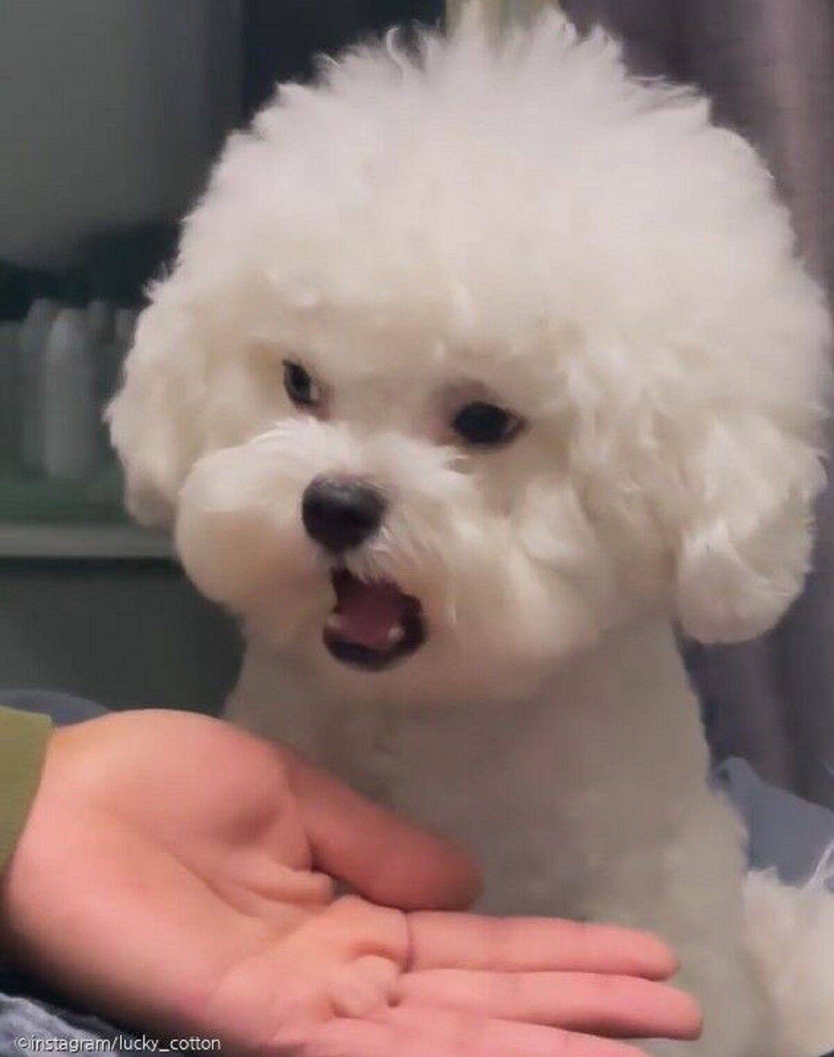 홍주 씨는 "당시 동결 건조 간식을 사 와서 코튼이 주려고 간식 한 개를 빼놨었는데, 잠깐 한눈판 사이 코튼이가 간식을 입에 넣어버렸다"고 설명했다.