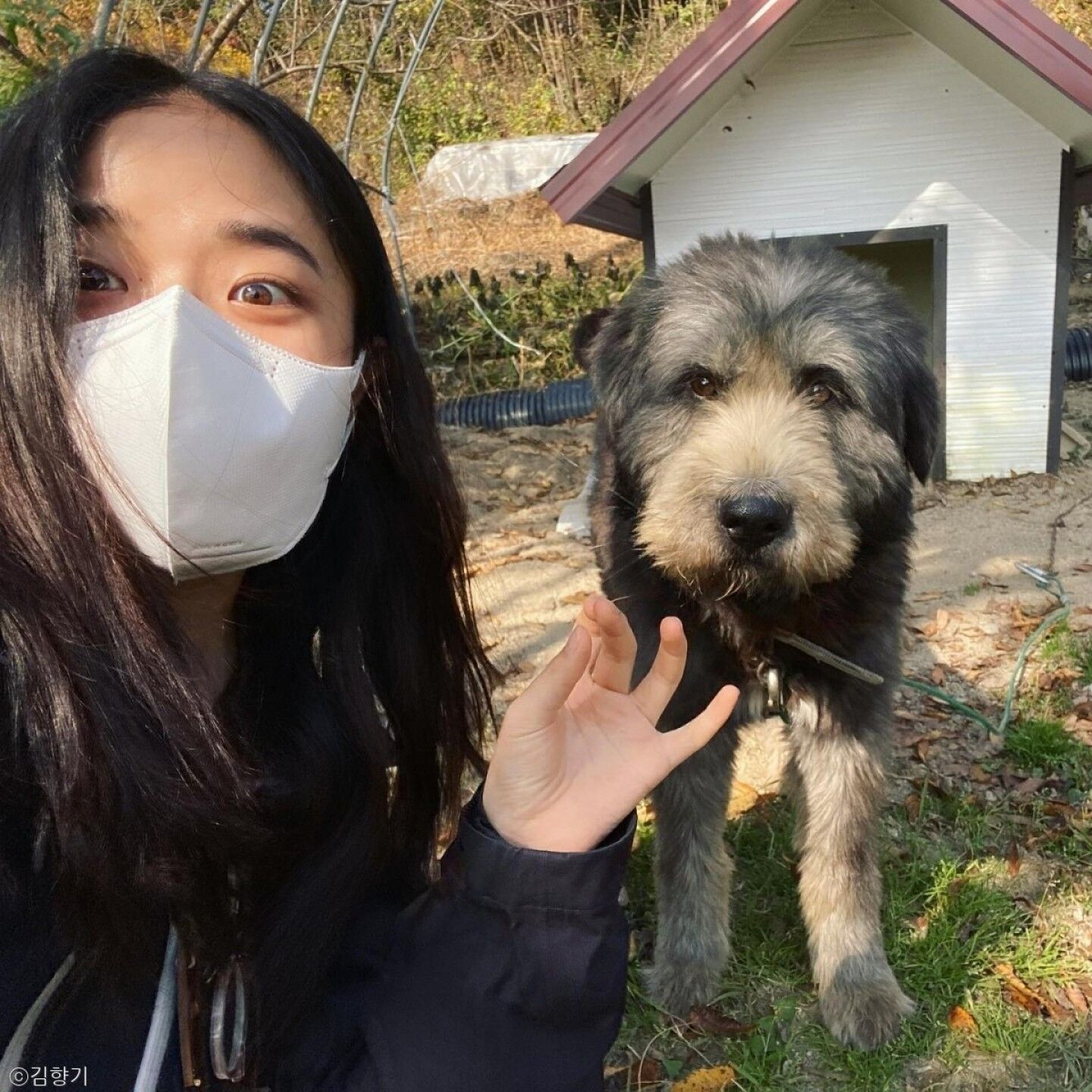 공개된 사진 속에는 커다란 강아지와 함께 셀카를 찍고 있는 김향기의 모습이 담겼다.