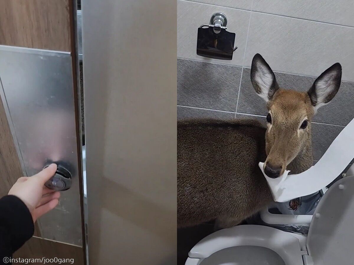 [노트펫] 공중화장실에 들어갔더니 변기 칸 안에서 휴지를 씹고 있는 노루를 발견한 사연이 사람들에게 놀라움을 주고 있다.