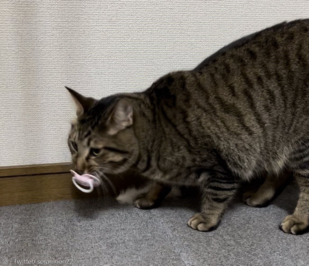 지난 26일(현지시간) 일본 온라인매체 그레이프에 따르면, 아기를 키우는 집사는 “아기 (실리콘) 젖꼭지를 방치한 결과에 폭소를 터트렸다.”며 사진 한 장을 공유했다.