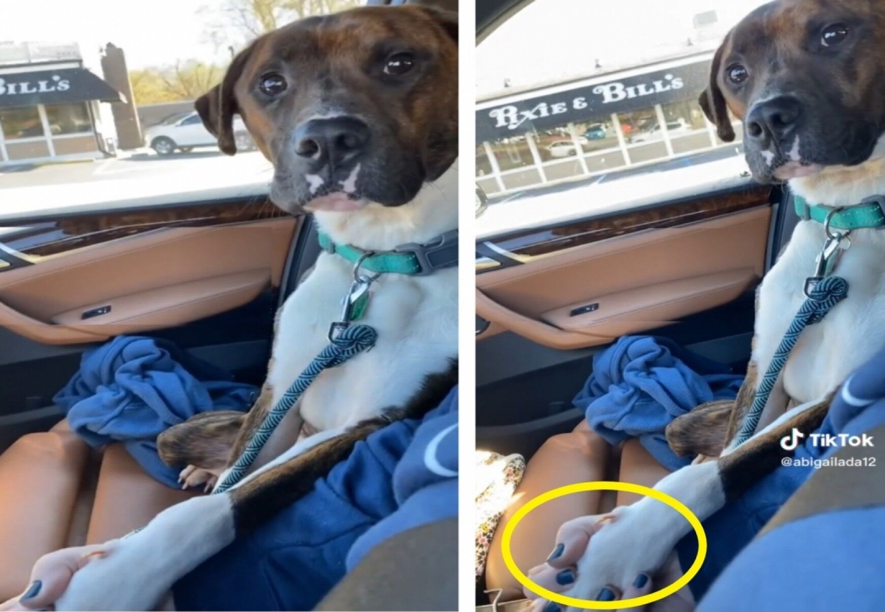 [노트펫] 입양한 반려견이 집으로 가는 차 안에서 내내 새 주인의 손을 잡고 애틋한 마음을 표현했다.