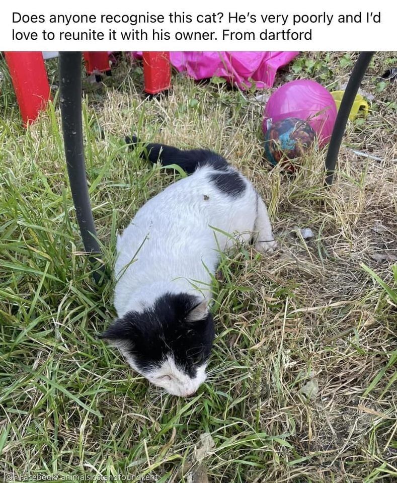 수의사는 마이크로칩을 찾지 못해 길고양이라고 생각하고, 켄트 실종동물단체(Animals Lost and Found)에 보냈다. 단체는 페이스북에 키지의 사진을 올리고 주인을 찾았다.