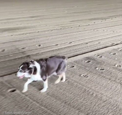 알리는 갈퀴가 달린 트랙터를 몰아 승마장의 발자국을 지우고 땅을 고르게 하는 작업을 하고 있었다. 그런데 알리의 트랙터 옆으로 그의 반려견이 등장했다.