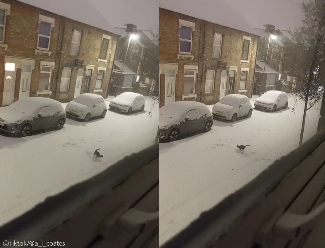 영국인 여성 AJ는 지난 3일 자신의 틱톡 계정에 "눈 속에서 놀고 있는 작은 길고양이를 포착했습니다"라는 설명과 함께 한 편의 영상을 게시했다.