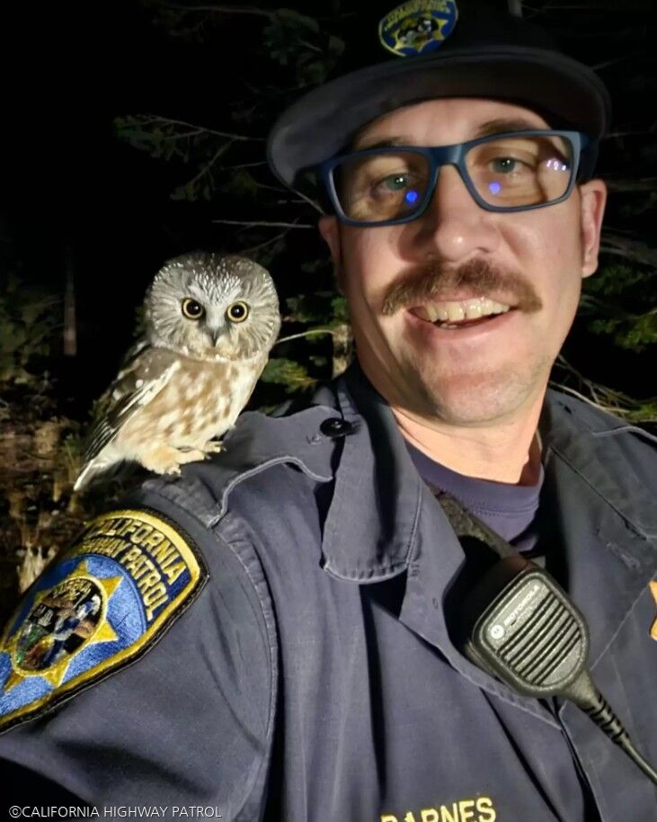 다행히 부엉이는 도로에서 발견됐지만 부상을 입은 흔적이 없었으며, 반즈 경관이 충분히 사진을 찍은 후 하늘로 날아갔다고 더도도는 전했다.