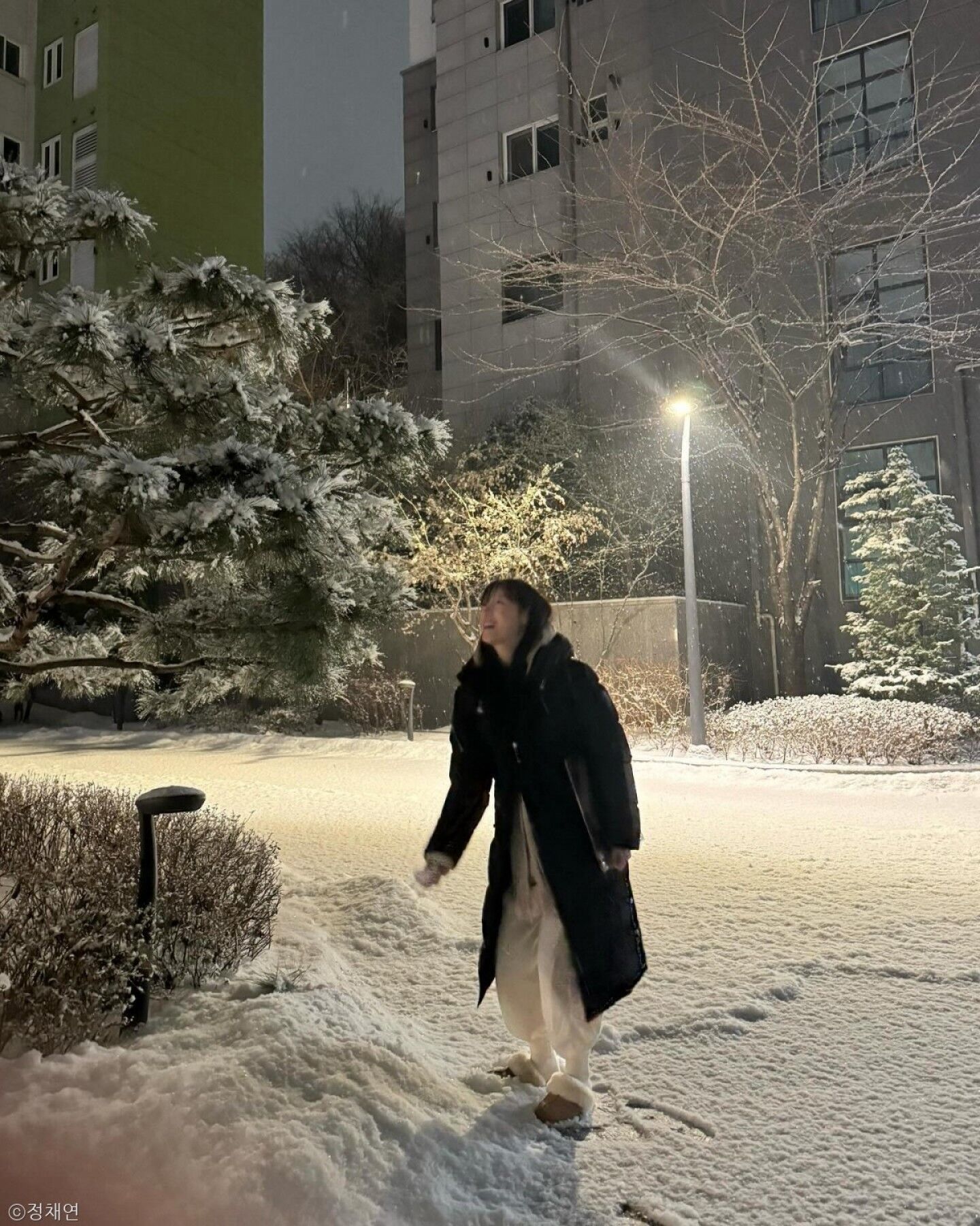 정채연, 반려견 '양치'와 즐긴 눈길 산책..."눈이 펑펑 내린"