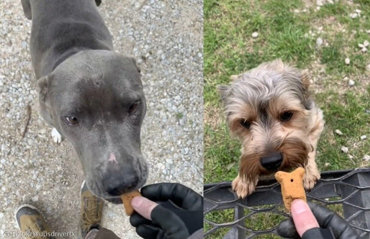 이후 만난 다른 강아지들 역시 모두 꼬리를 흔들며 배달원에게 다가와 인사를 하고 간식을 얻어먹는 모습이다.