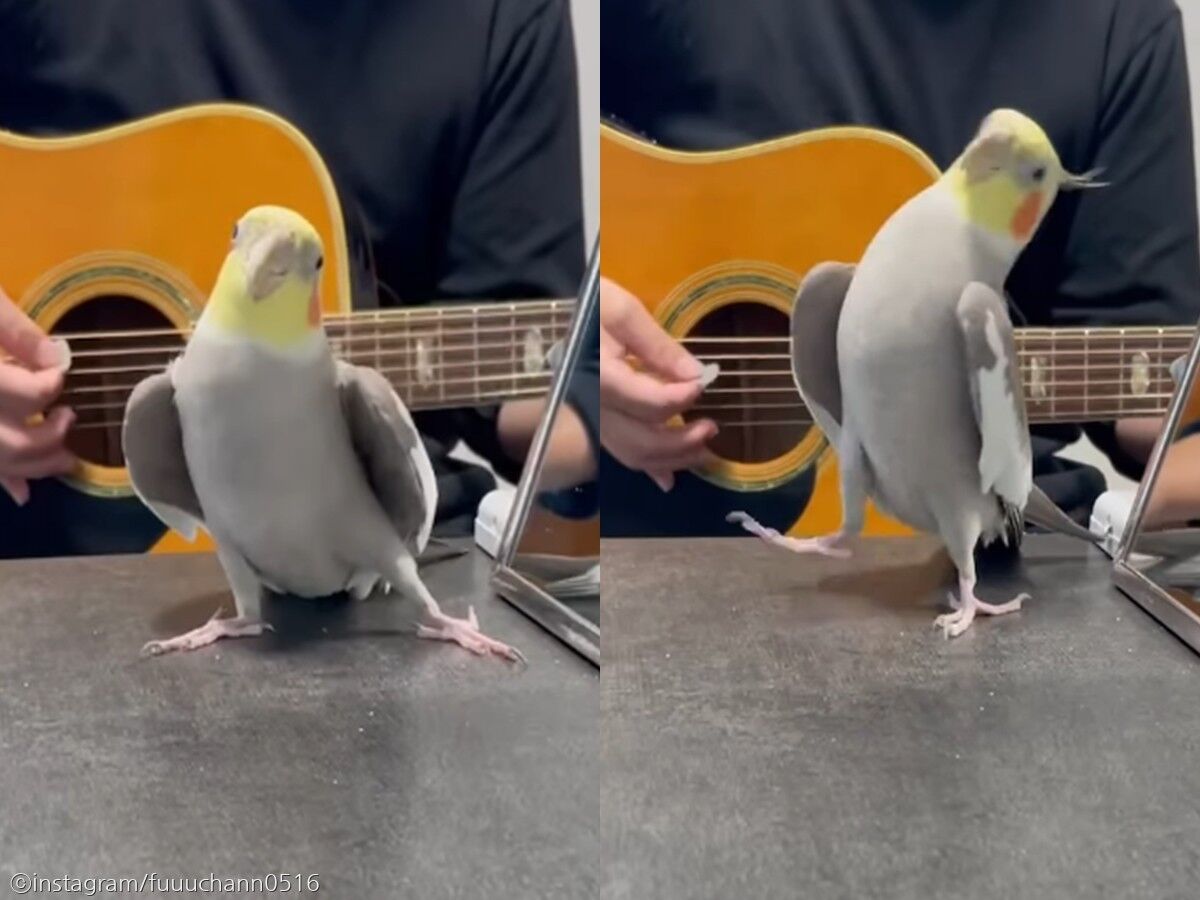 [노트펫] 주인의 기타 연주에 맞춰 노래를 부르고 멋진 포즈까지 선보이는 앵무새가 네티즌들의 관심을 끌었다.