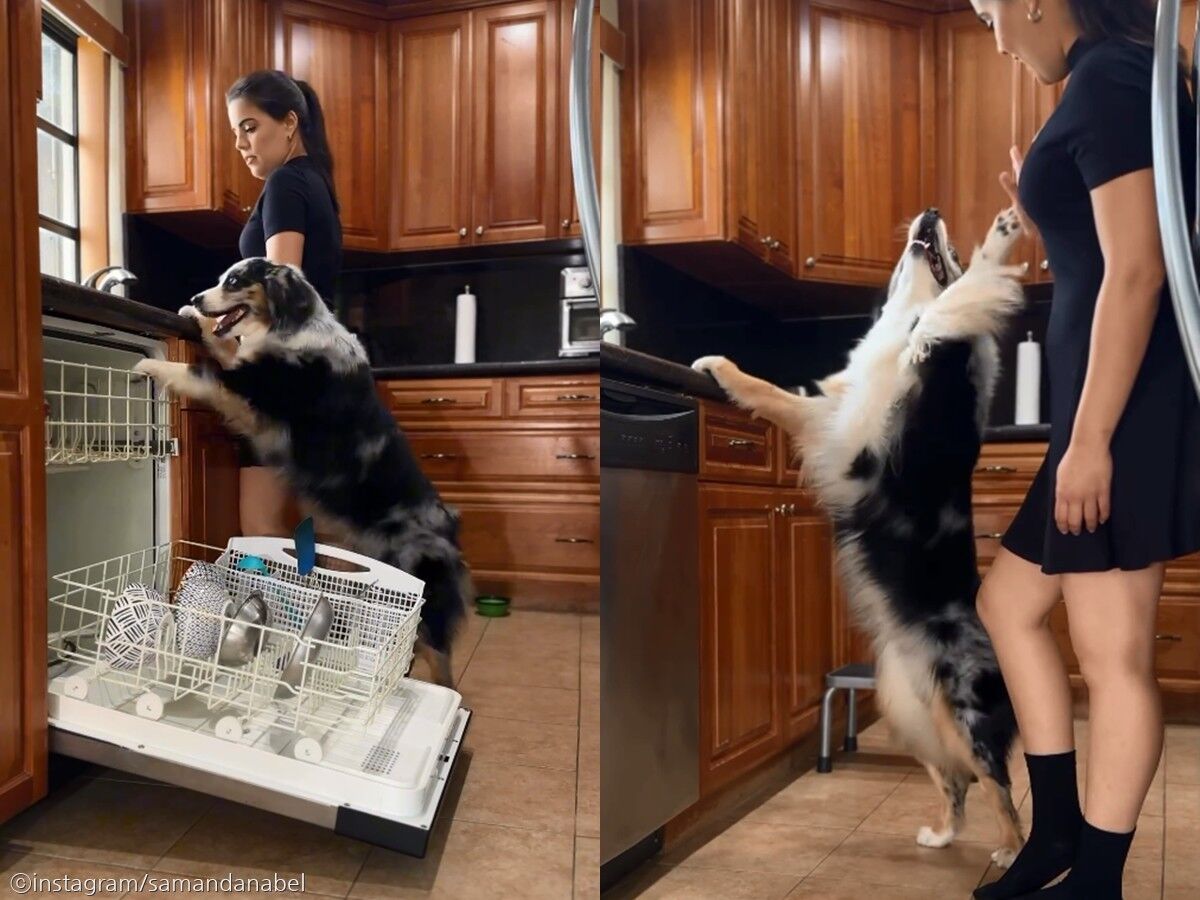샘의 자랑거리는 바로 주인의 설거지를 돕는 것. 영상 속 샘은 주인의 지시에 따라 그릇을 식기세척기에 차곡차곡 넣는다. 심지어 냄비를 넣거나 머그컵을 넣는 것도 완벽하게 해냈다.