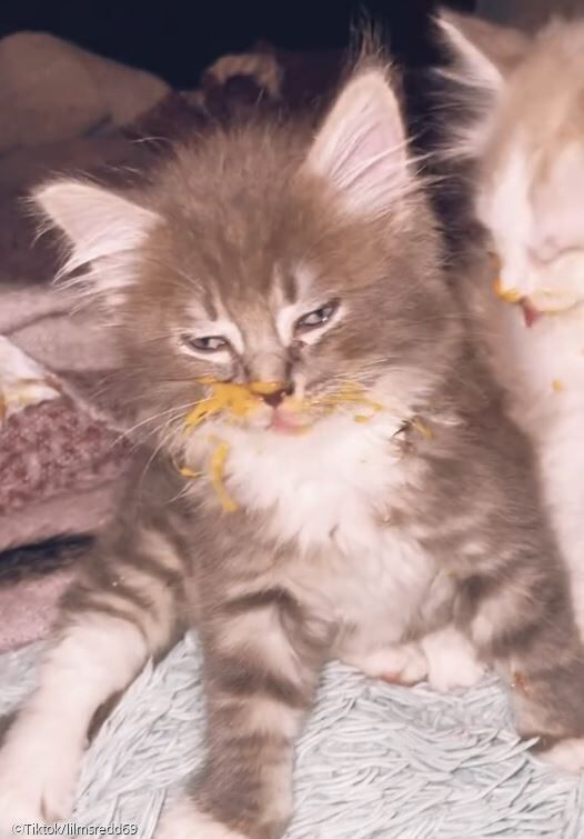 심지어 녀석들은 집사의 음식이 맛있었는지 입과 수염에 묻은 치즈를 핥아먹고 있다.