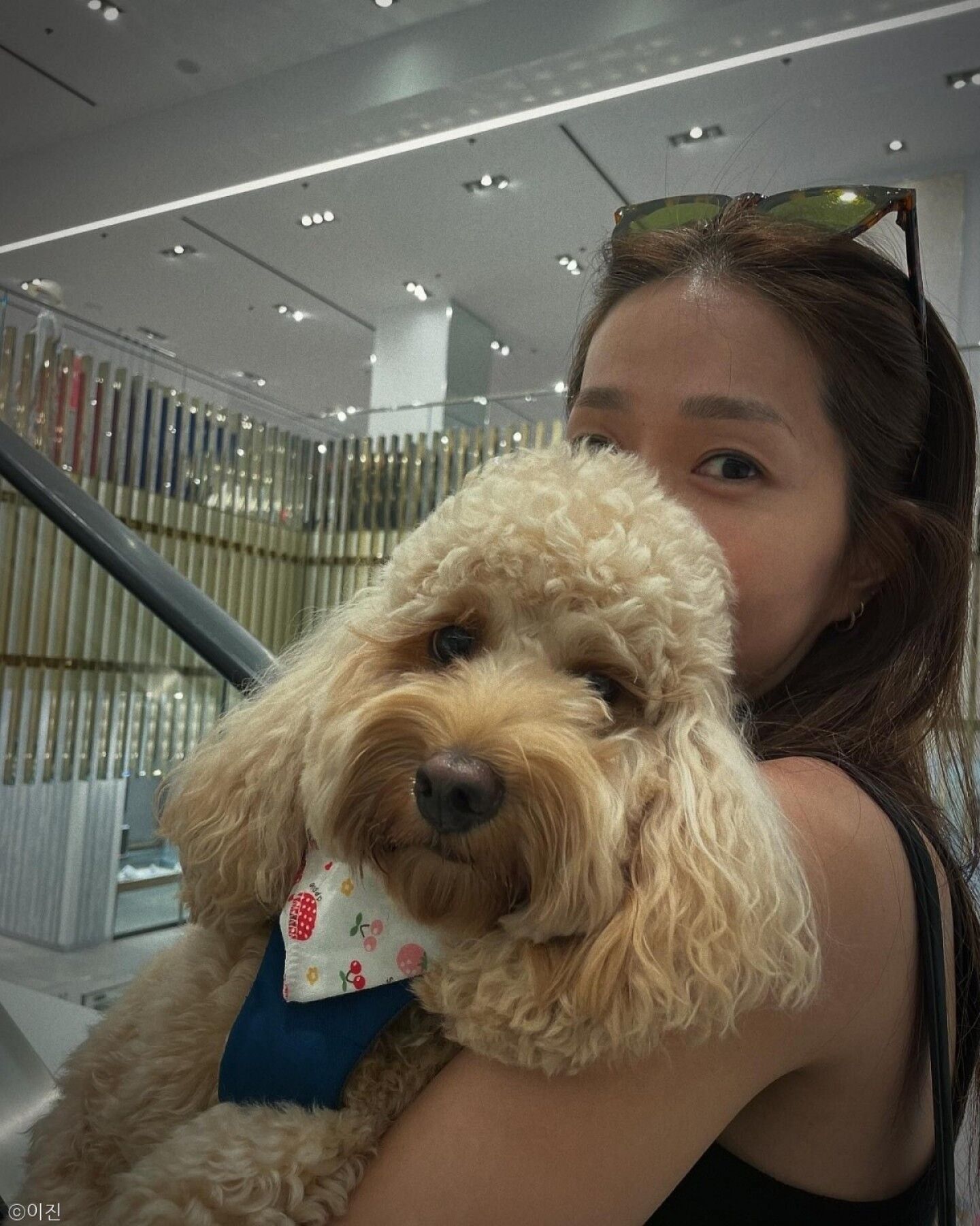 공개된 사진 속에서 이진은 장군이를 품에 꼭 안은 채 미소 짓고 있다. 사랑스러운 매력을 뽐내며 카메라를 응시하는 장군이의 귀여운 모습이 눈길을 끈다.