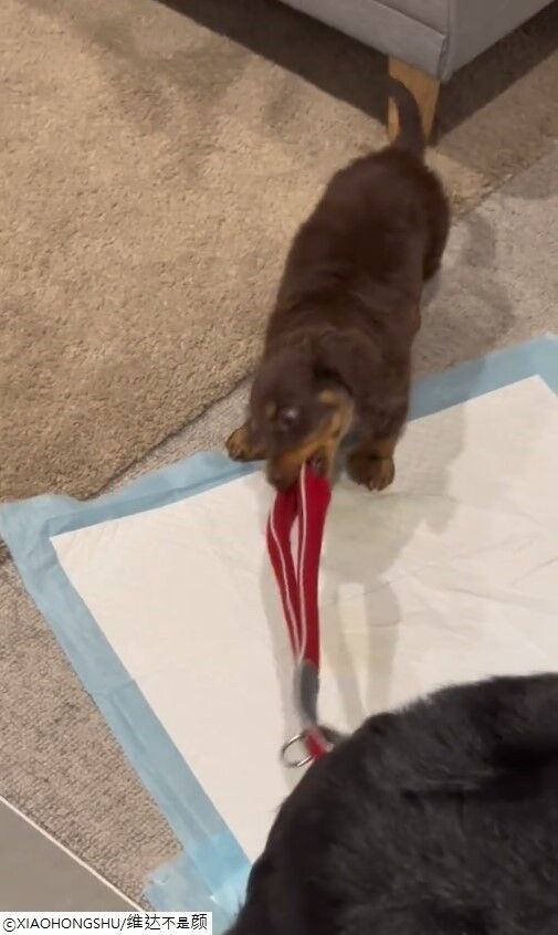 [노트펫] 작은 '쪼꼬미' 강아지가 산책 나가는 대형견의 목줄을 물고 끌어당기는 모습이 웃음을 자아냅니다.