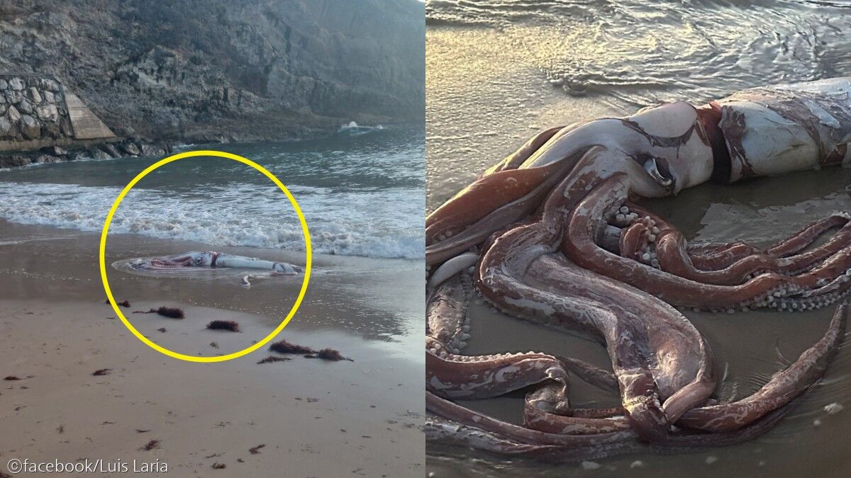 [노트펫] 스페인 북부 해변에서 거대한 오징어가 발견돼 관심을 모으고 있다.