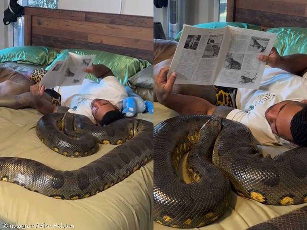 홀스턴 씨가 지난 8일 자신의 인스타그램 계정(@therealtarzann)을 통해 공개한 영상은 침대 위에 누워 있는 아나콘다를 보여줍니다.
