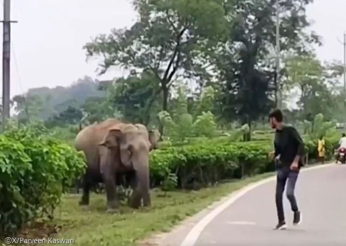 인도 산림청(IFS) 관계자인 파르빈 카스완(Parveen Kaswan)이 지난 12일 소셜미디어 'X' 계정에 공개한 영상을 보면, 남성은 코끼리를 반복적으로 놀리고 있다.