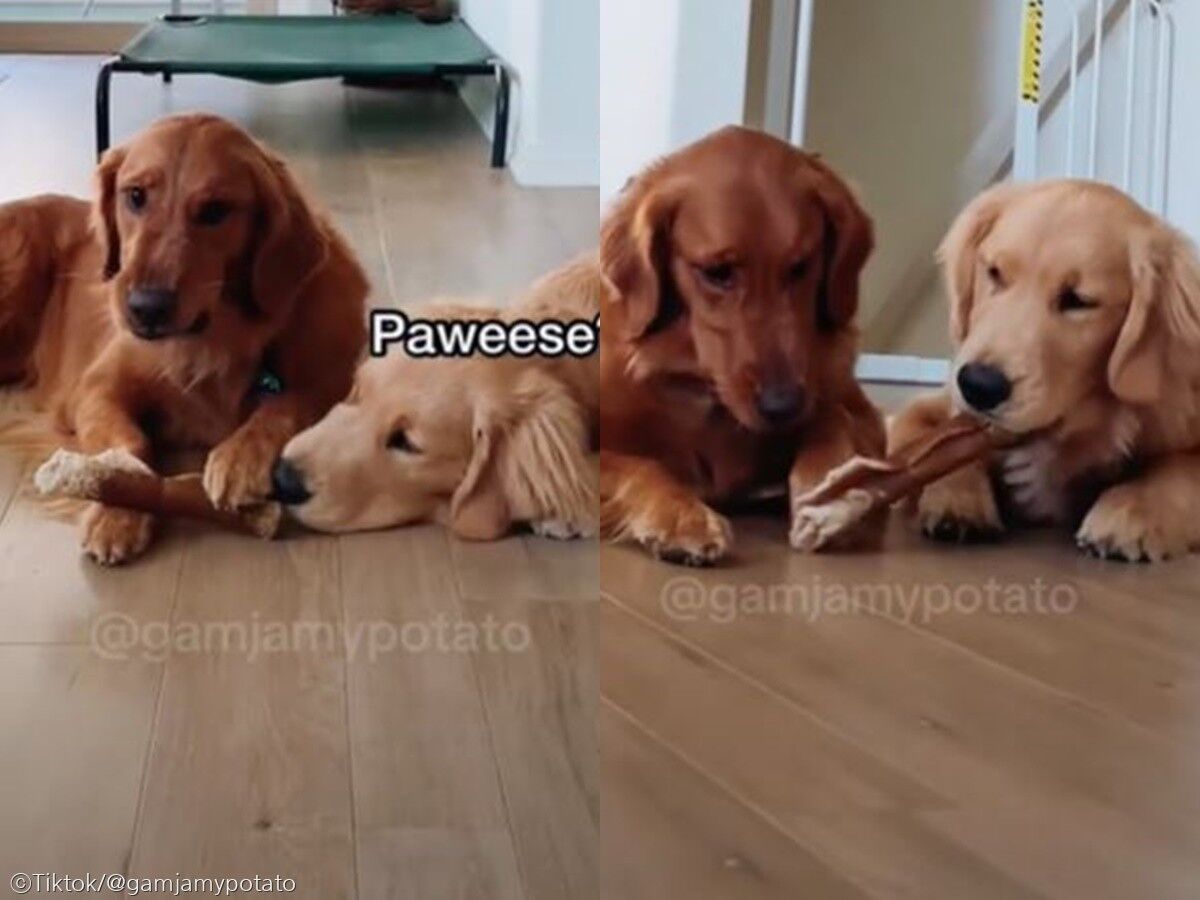누나 간식 탐난 남동생 리트리버, 뻔뻔하게 강탈 시도 '그거 나 주라고~'
