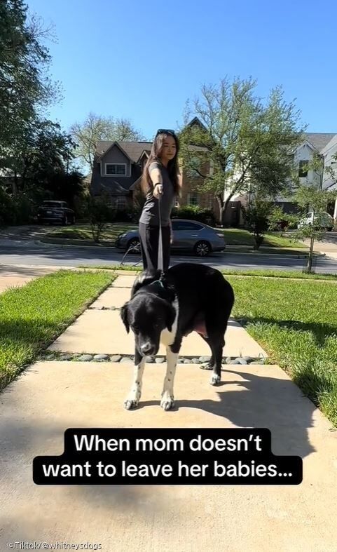 한 틱톡 유저가 지난달 14일 자신의 계정(@whitneysdogs)에 공개한 영상은 집 밖으로 나오고도 좀처럼 이동하지 못하는 어미견을 보여줍니다.