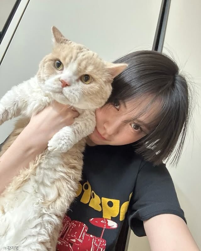 공개된 사진 속에는 강지영과 그녀의 반려묘 '니니', '고트'의 모습이 담겼다.