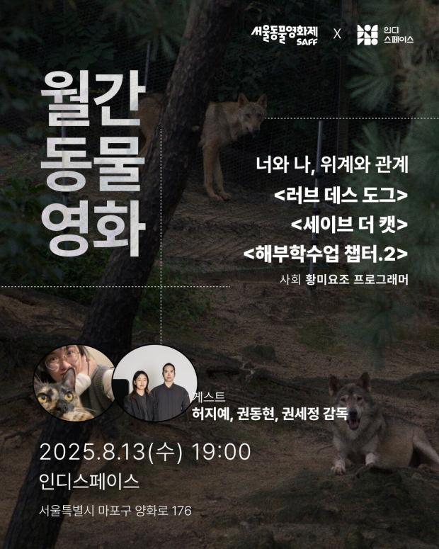 31일 서울동물영화제에 따르면, 2025년 '월간 동물영화'는 서울동물영화제에서 주목받은 상영작을 감상하고, 관객과 함께 사유를 나누기 위해 마련된 정기 프로그램이다.