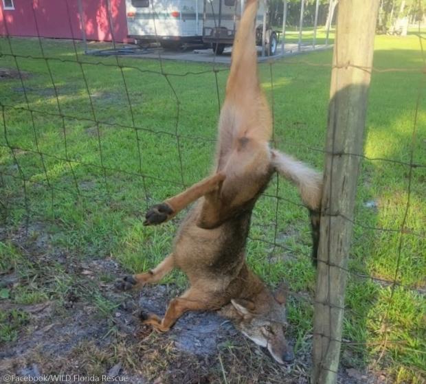 지난주, 미국 플로리다주 야생동물 구조단체(WILD Florida Rescue, WFR)의 한 구조대원은 긴박한 구조 요청을 받게 됐다. 지역 주민은 야생 동물 한 마리가 울타리에 거꾸로 매달려 움직이지 못하고 있다고 설명했다.