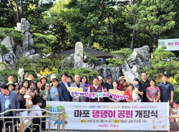 지난 18일에 열린 개장식에는 박강수 마포구청장과 백남환 마포구의회 의장, 구의원, 주민 등 50여 명이 참석해 '댕댕이 폭포' 앞에서 테이프 커팅식과 기념 촬영을 진행했다.