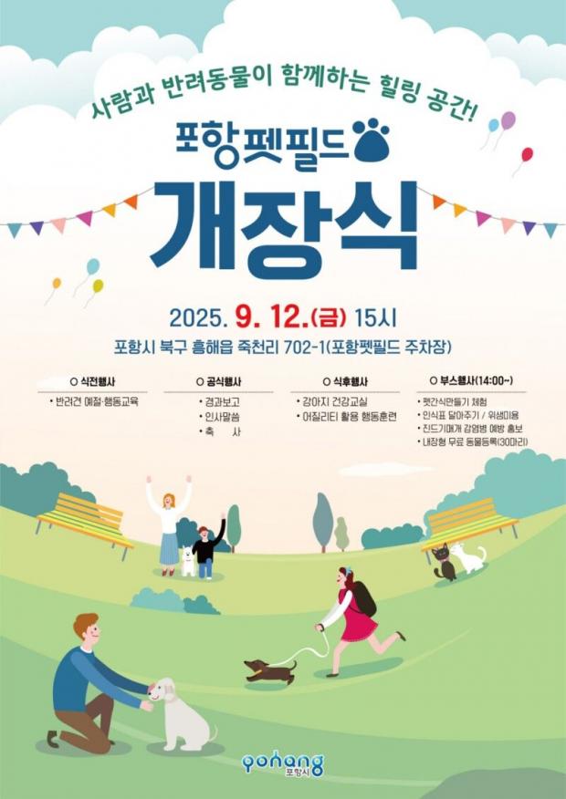 '사람과 반려동물이 함께하는 힐링 공간!' 포항시, '포항 펫필드' 개장식 오는 12일 개최