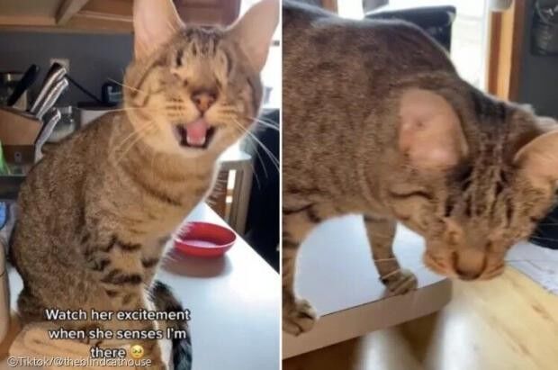 미국 시사주간지 뉴스위크는 눈이 보이지 않는 고양이가 집사가 방에 들어온 걸 알아채자 울며 응석을 부리는 모습을 공개했다.