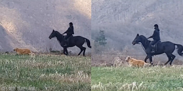[노트펫] AOA 멤버 설현이 승마 연습 중 만난 강아지의 모습을 공개했다.