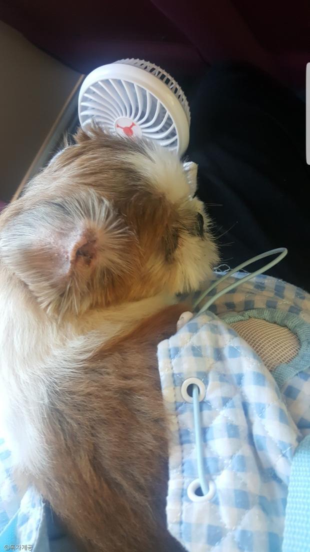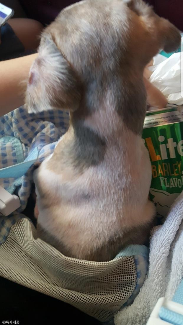 | 미용 후 방울이의 몸이 너무 뜨거운 찬 음료캔으로 식혀줬다는 견주 |